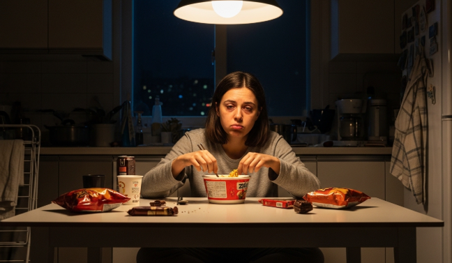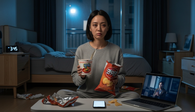 늦게까지 깨어 있으면 추가 섭취가 늘어날 수 있습니다.