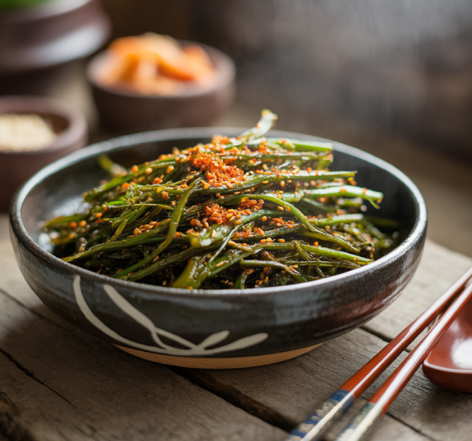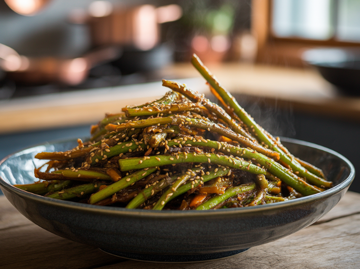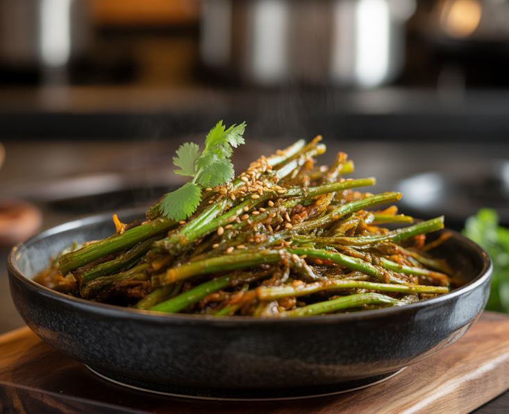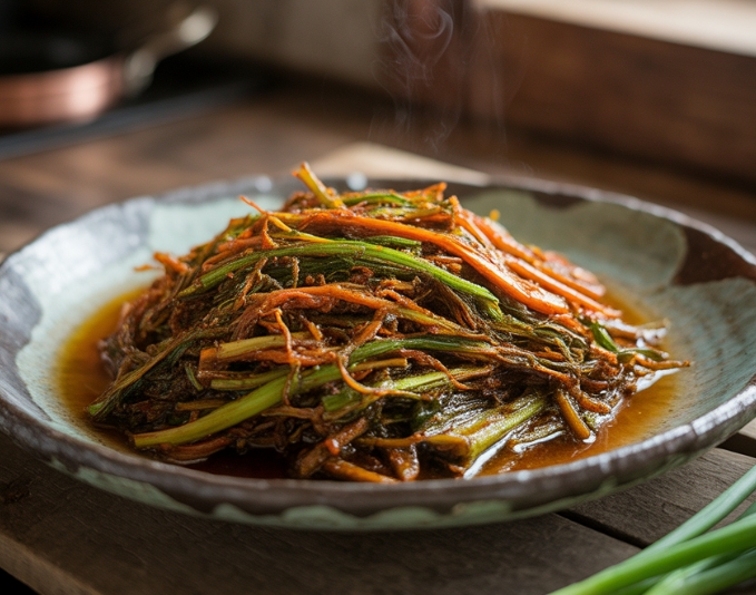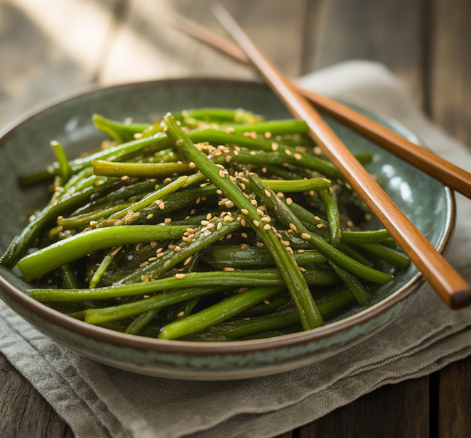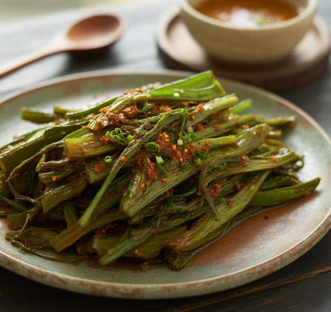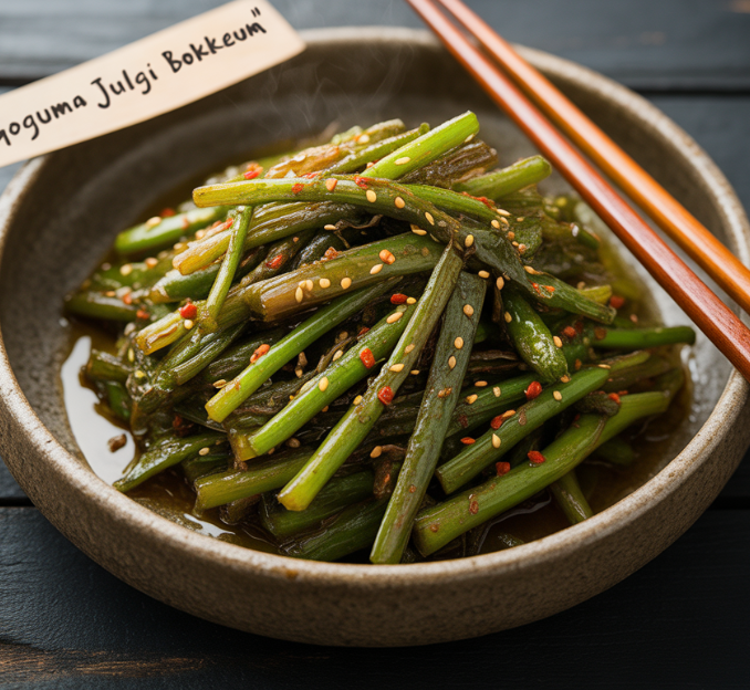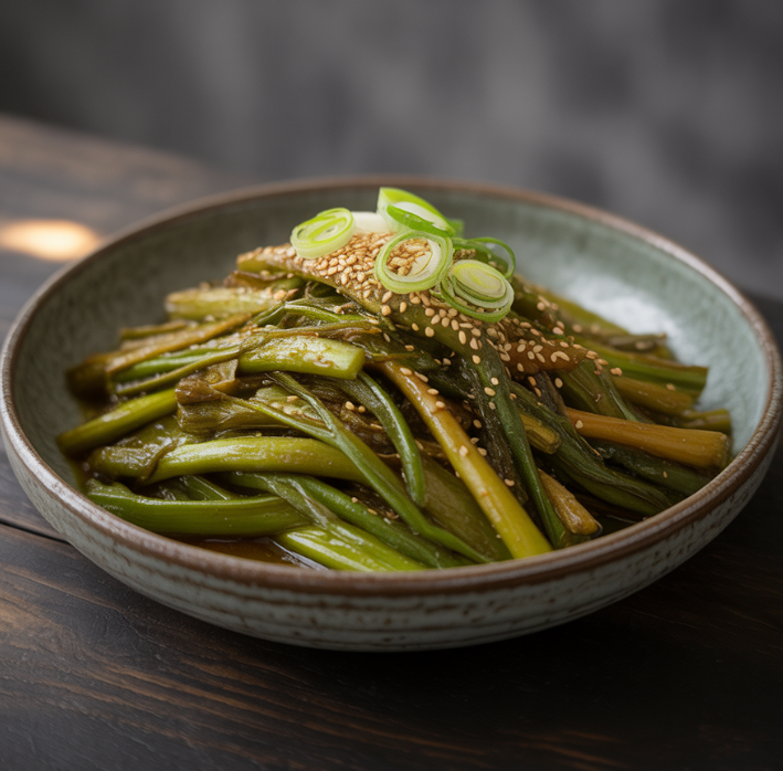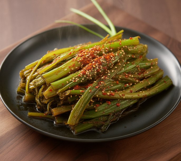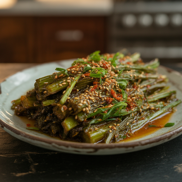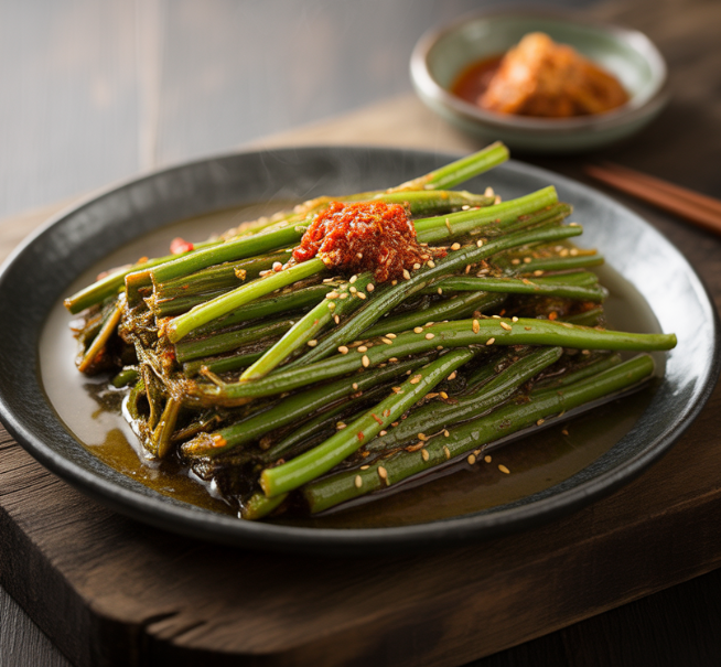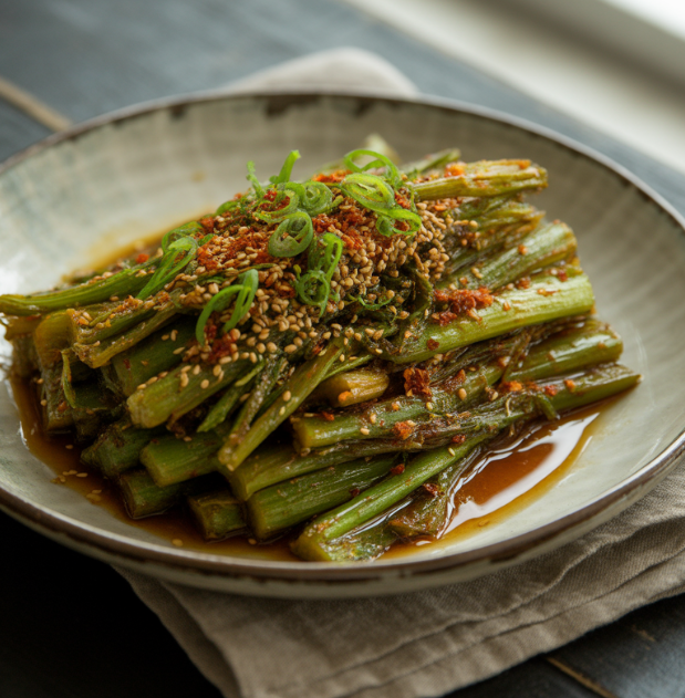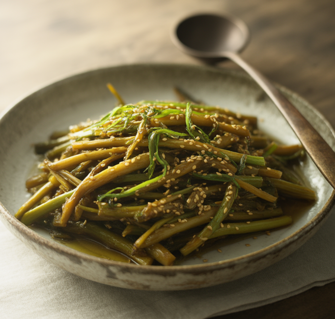 볶음 반찬: 데친 줄기를 들기름과 간장, 마늘로 볶아 고소한 반찬으로 즐길 수 있습니다.