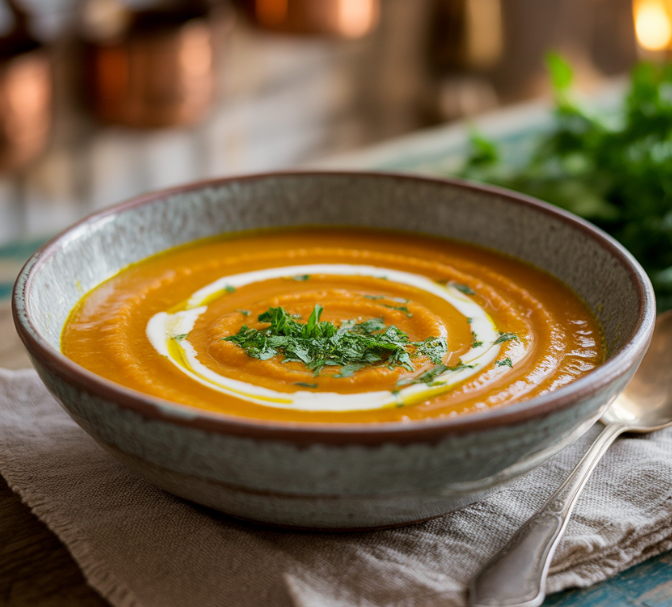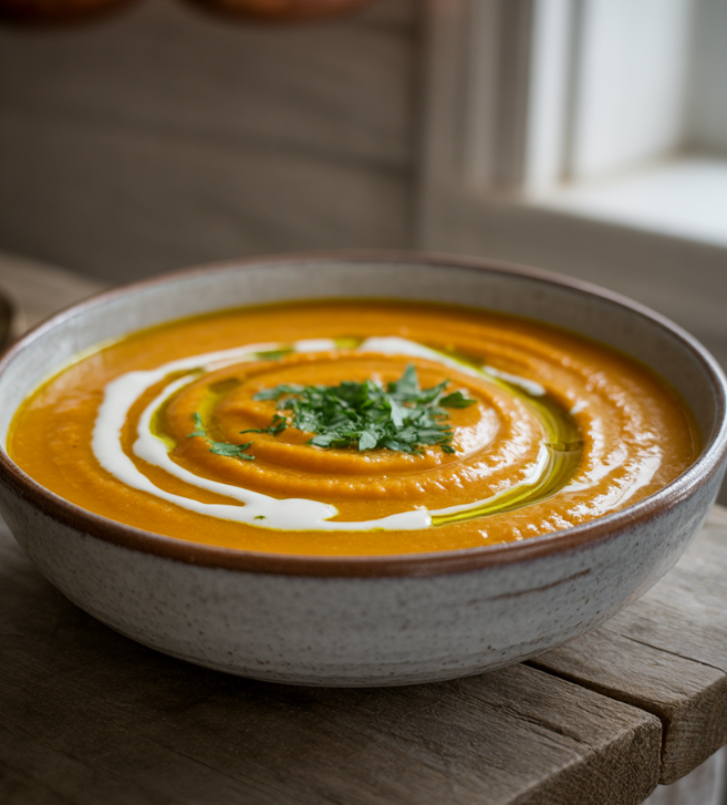 단호박 스프 – 우유, 두유와 함께 갈아 부드럽게 섭취 가능