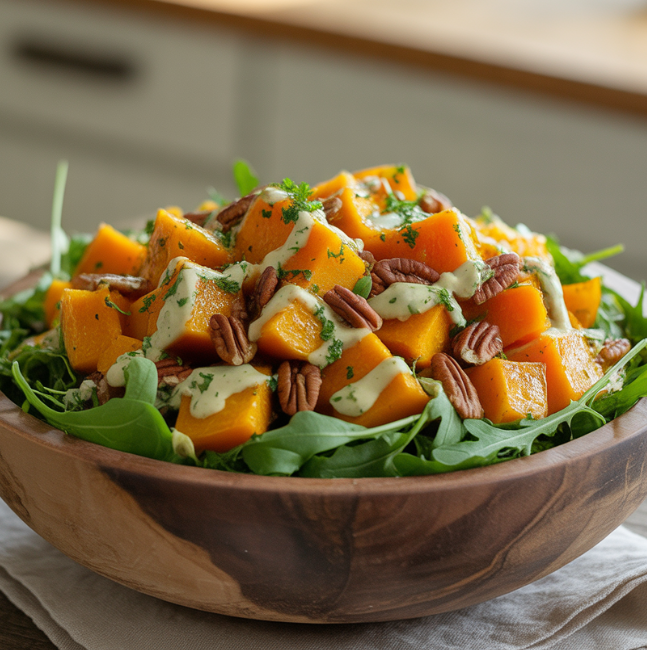 단호박 샐러드 – 삶아 으깬 후 채소와 섞어 영양 만점 간식으로