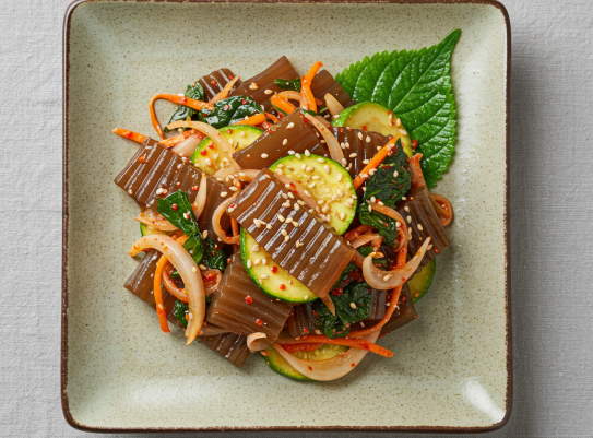 묵 데치기 : 끓는 물에 묵을 잠시 데친 후 찬물에 헹궈 사용하면 묵의 잡내가 사라지고 식감이 탱탱해집니다.