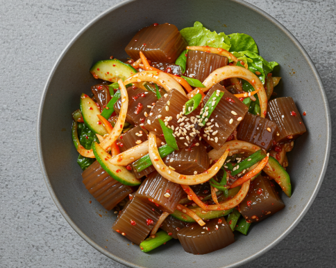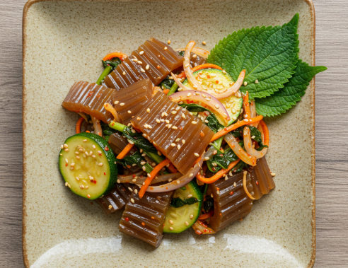 탱글탱글하고 담백한 도토리묵은 한여름 시원하게 즐기기 좋은 음식이자, 부담 없이 먹을 수 있는 건강식으로 널리 사랑받습니다. 하지만 도토리묵만 단독으로 먹으면 맛이 심심하기 때문에, 신선한 채소와 감칠맛 가득한 양념장을 곁들여 무침 요리로 즐기는 것이 가장 인기 있는 방법입니다.