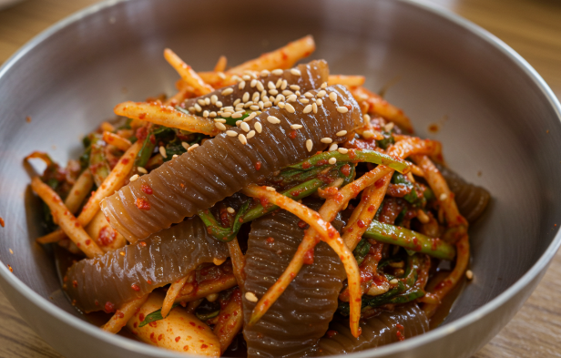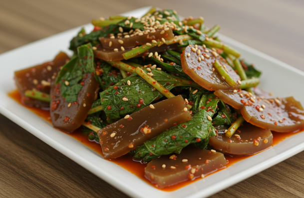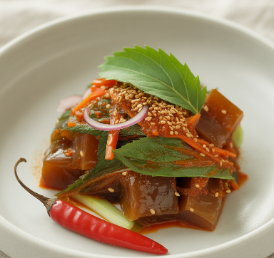 양념장은 도토리묵 무침의 ‘맛의 핵심’이라 할 수 있습니다. 간장으로 짠맛을, 고춧가루로 매운맛을, 식초와 매실청으로 새콤달콤함을 더해 조화로운 맛을 완성하는 것이 중요합니다.