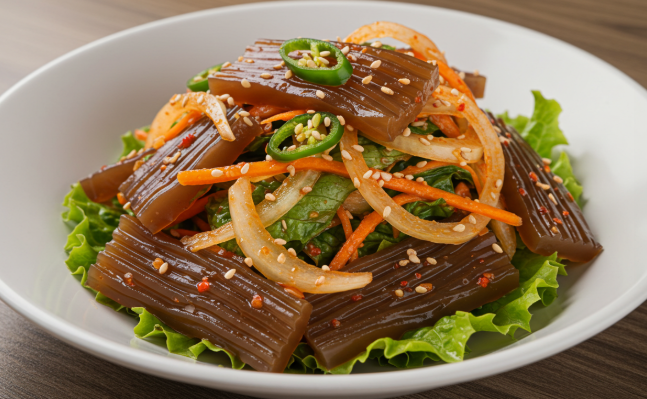 탱글탱글하고 담백한 도토리묵은 한여름 시원하게 즐기기 좋은 음식이자, 부담 없이 먹을 수 있는 건강식으로 널리 사랑받습니다. 하지만 도토리묵만 단독으로 먹으면 맛이 심심하기 때문에, 신선한 채소와 감칠맛 가득한 양념장을 곁들여 무침 요리로 즐기는 것이 가장 인기 있는 방법입니다.