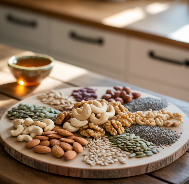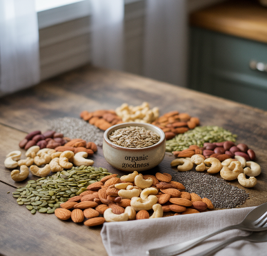 씨앗류: 호박씨, 해바라기씨, 치아씨드