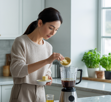 - 아침 대신 방탄커피를 마시면 포만감이 유지되어 간식 섭취를 줄일 수 있습니다.