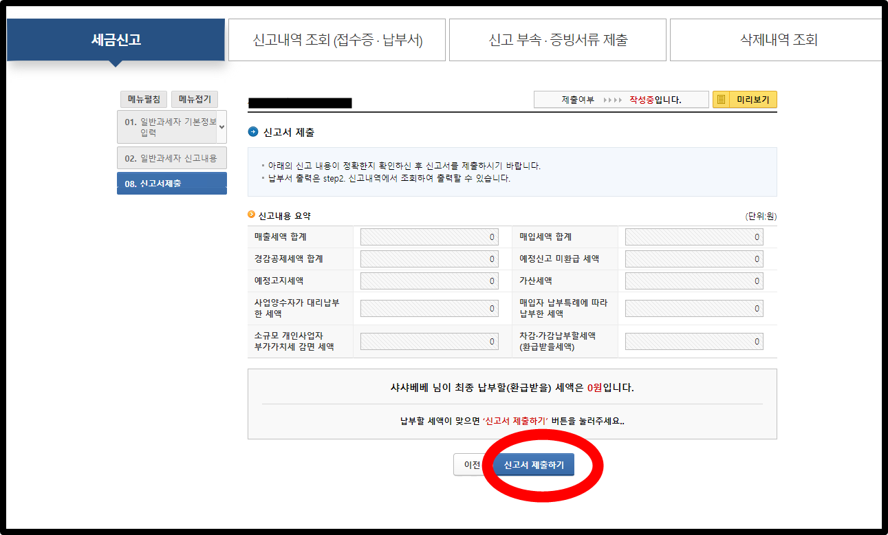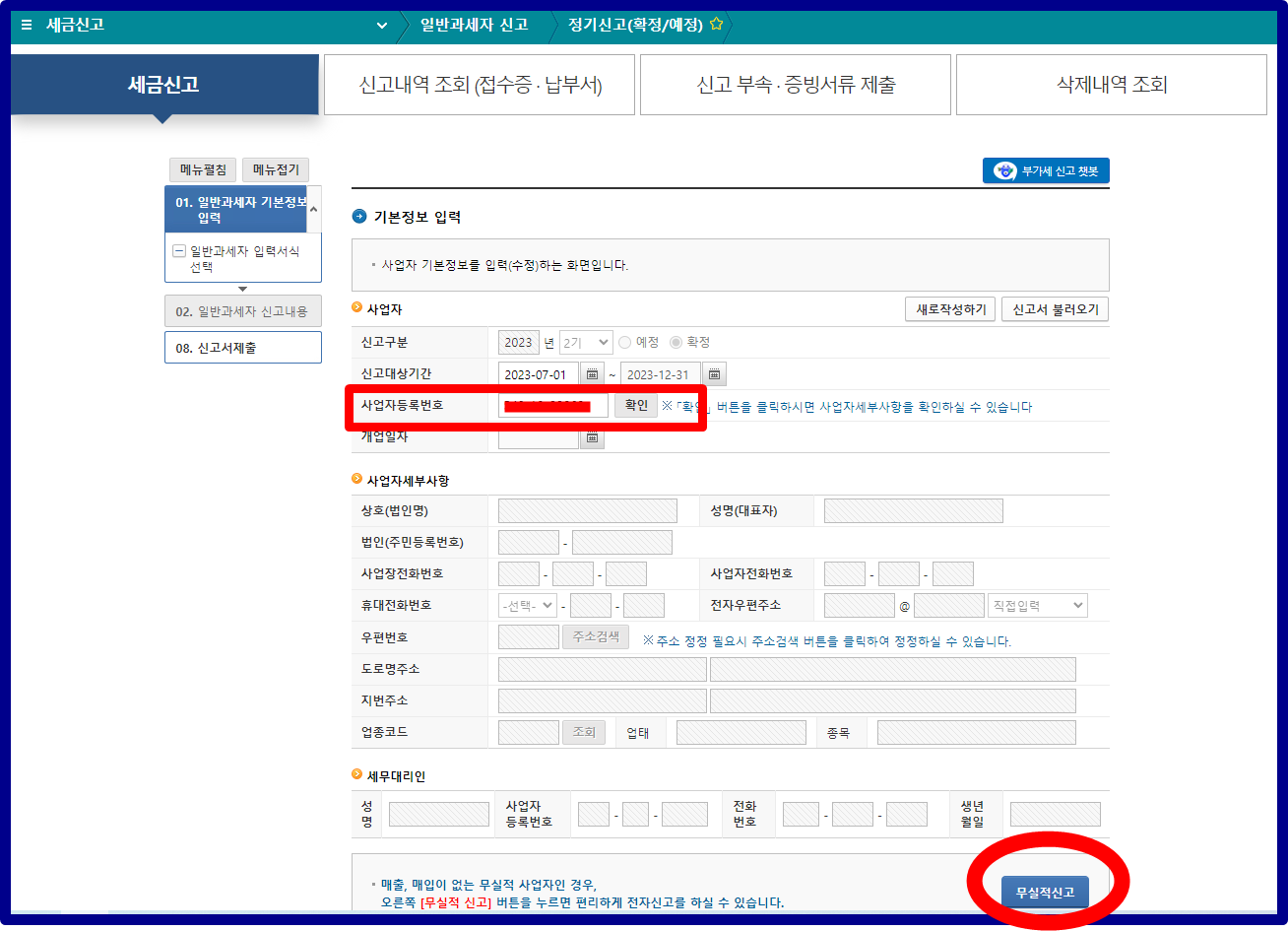 부가세 무실적 신고 방법