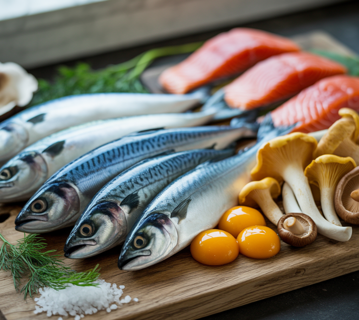 식단 관리: 연어, 고등어, 달걀, 버섯 등을 자주 식단에 포함시키는 것이 좋습니다.