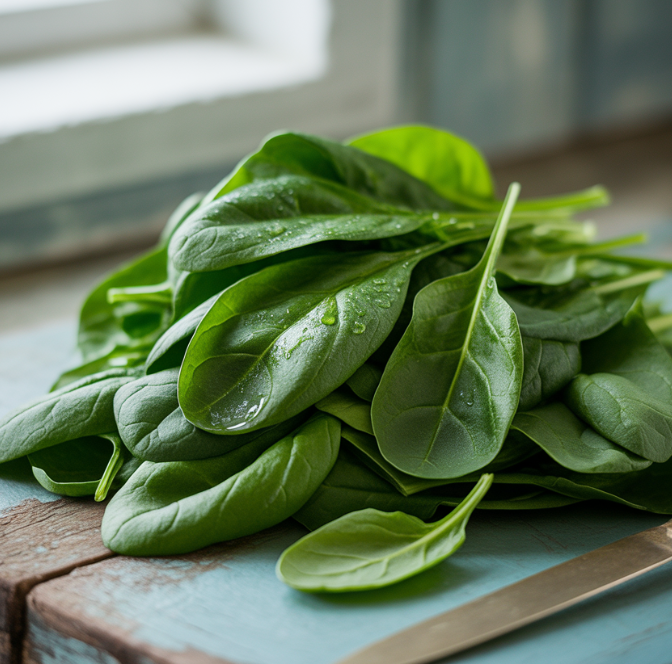 시금치: 녹황색 채소 중 비타민E 함량이 높은 대표 식품입니다.