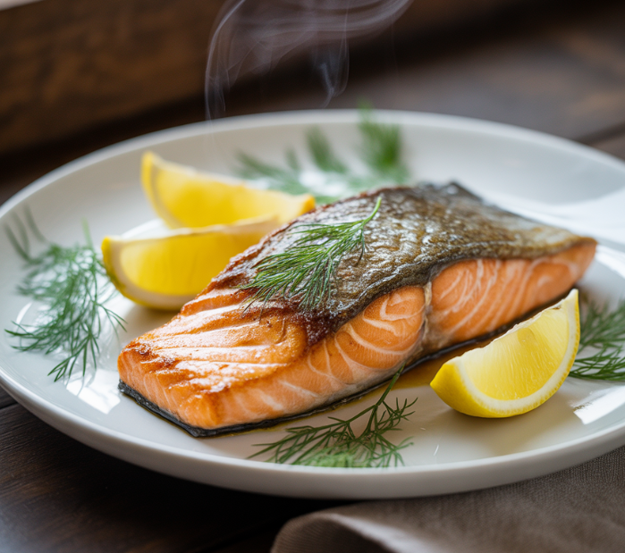 연어, 송어: 오메가-3 지방산과 함께 비타민E가 함유되어 있어 혈관 건강에 시너지 효과를 줍니다.