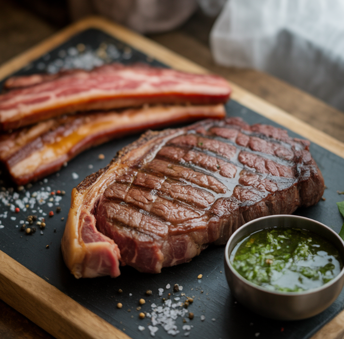 스테이크, 삼겹살 등 고단백 식품을 과도하게 먹으면 신장이 단백질 대사 노폐물을 처리하느라 과부하가 걸립니다.