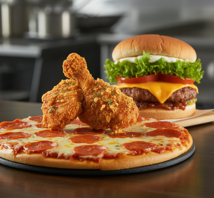 치킨, 피자, 햄버거 등은 나트륨, 인산염, 포화지방이 많아 신장 건강에 해롭습니다.