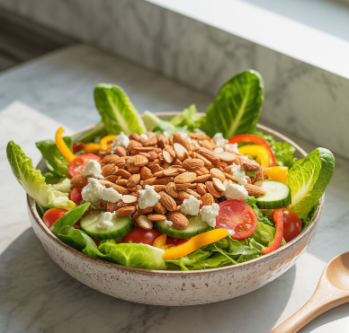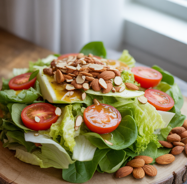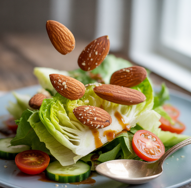 아몬드는 칼로리가 높지만, 적당량을 섭취하면 포만감을 주어 과식을 방지합니다. 또한 식이섬유가 풍부해 소화 속도를 늦추고 혈당 상승을 완화하여 다이어트 간식으로 인기가 많습니다.
