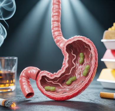 • 만성 위염은 헬리코박터 파일로리균, 잘못된 식습관, 흡연, 음주로 인해 서서히 진행됩니다.