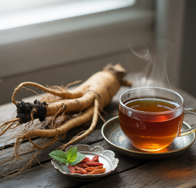 얇게 썬 인삼을 끓여 따뜻한 차로 마시면 쓴맛이 완화되고 소화에도 편안합니다.