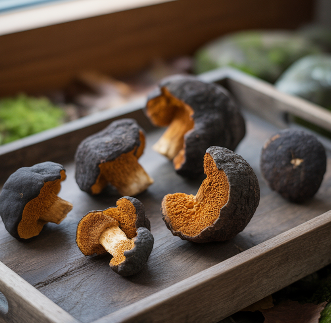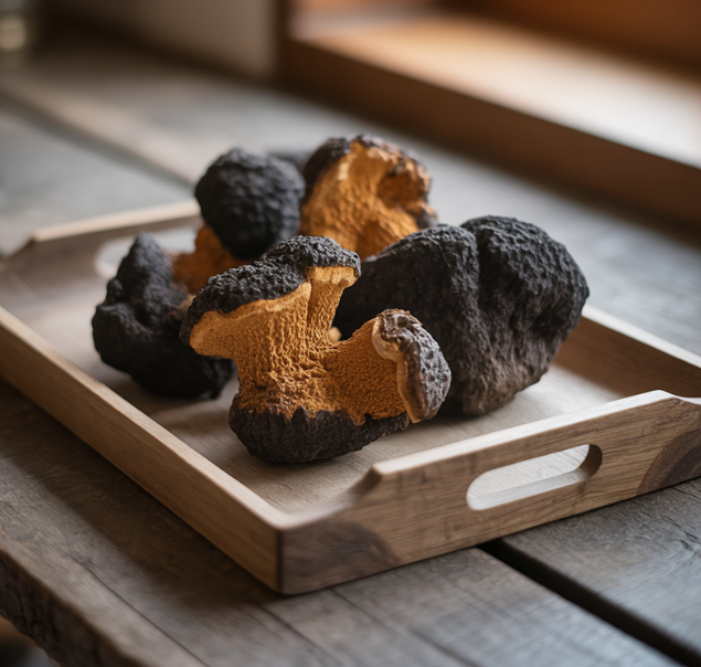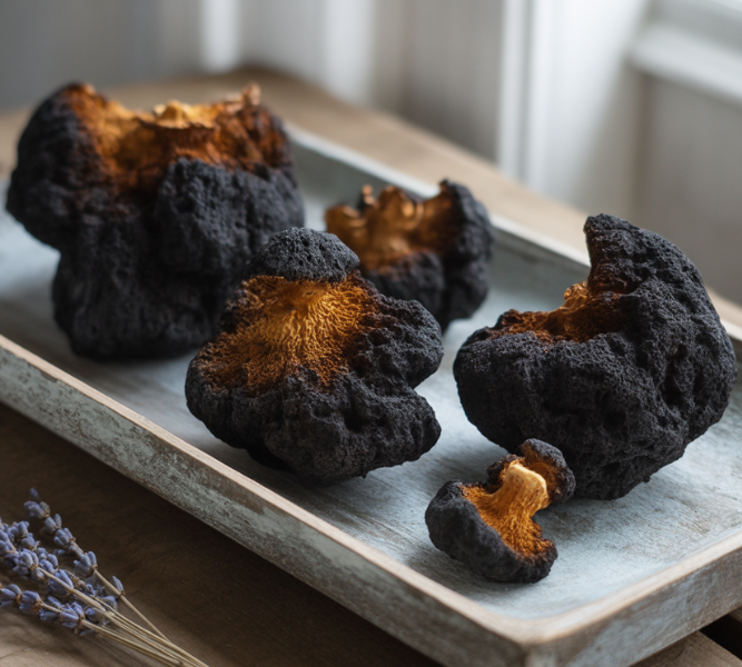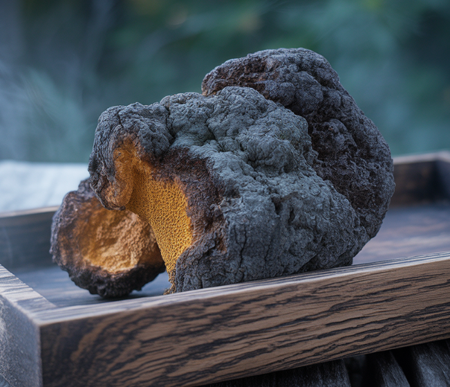 차가버섯은 자작나무에 기생해 자라는 특수한 버섯으로, 겉모습은 검게 그을린 숯처럼 보이지만 내부는 황금빛을 띠고 있습니다. 특히 러시아와 북유럽 지역에서는 수백 년 전부터 민간에서 면역 강화와 건강 회복을 위해 사용되어 왔습니다.