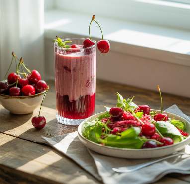 체리 주스는 운동 후 근육통을 줄이고 회복 속도를 높여주는 과일 음료로도 알려져 있습니다.