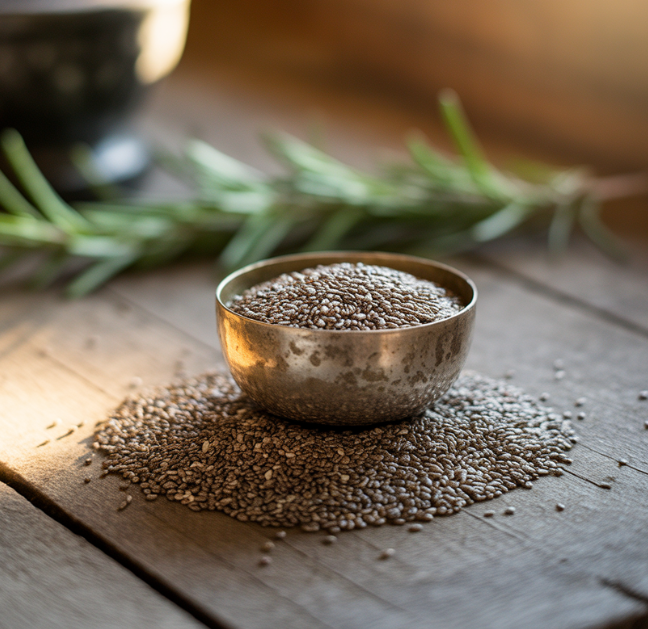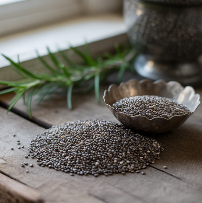 치아씨드는 단백질, 칼슘, 마그네슘, 오메가-3 지방산, 식이섬유 등이 고루 들어 있습니다. 작은 알갱이 속에 필수 영양소가 가득해 현대인의 불규칙한 식습관을 보완하는 데 도움이 됩니다.