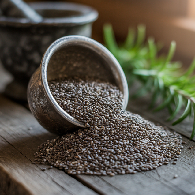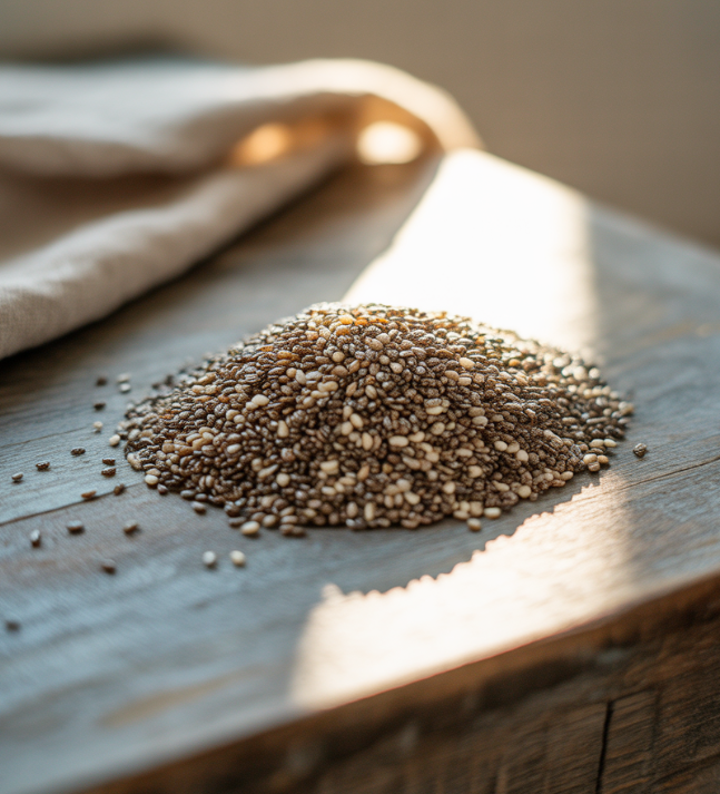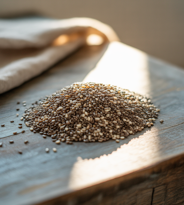 치아씨드는 단백질, 칼슘, 마그네슘, 오메가-3 지방산, 식이섬유 등이 고루 들어 있습니다. 작은 알갱이 속에 필수 영양소가 가득해 현대인의 불규칙한 식습관을 보완하는 데 도움이 됩니다.
