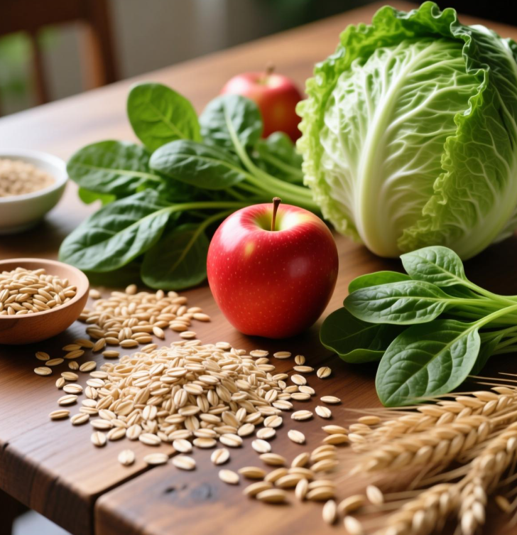 귀리, 보리, 사과, 시금치, 양배추 등은 수용성 식이섬유가 풍부해 콜레스테롤 흡수를 막습니다.