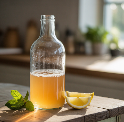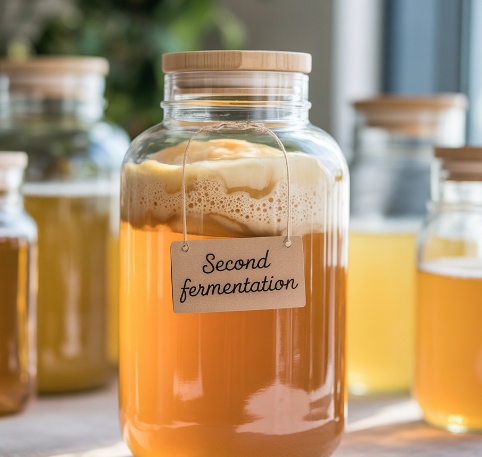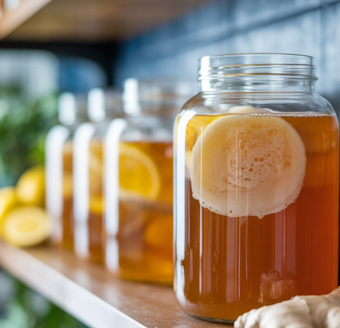 콤부차는 홍차나 녹차를 끓여 설탕을 넣은 뒤, 효모와 박테리아가 공생하는 SCOBY 라는 발효균을 넣어 일정 기간 숙성시켜 만듭니다. 발효 과정에서 차 잎의 카테킨과 폴리페놀이 더욱 활성화되고, 동시에 프로바이오틱스, 유기산, 미네랄, 비타민이 생성됩니다. 완성된 콤부차는 일반 탄산음료처럼 청량감이 있지만, 인공 첨가물이 아닌 자연 발효 성분이 특징입니다.