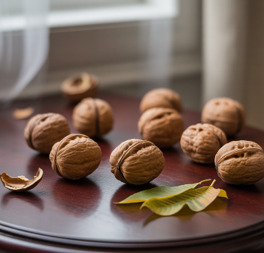 호두에는 멜라토닌의 전구체가 들어 있어 수면 주기를 조절하고 숙면에 도움을 줄 수 있습니다.