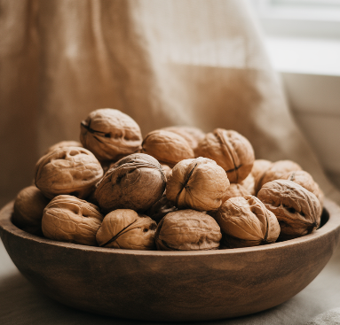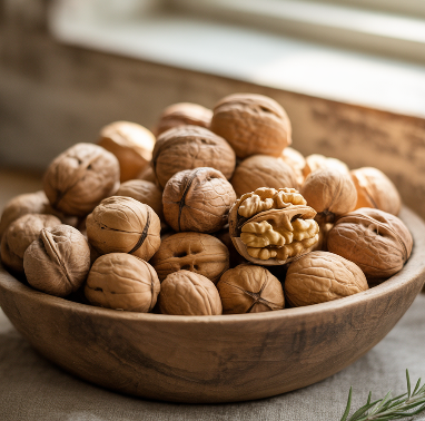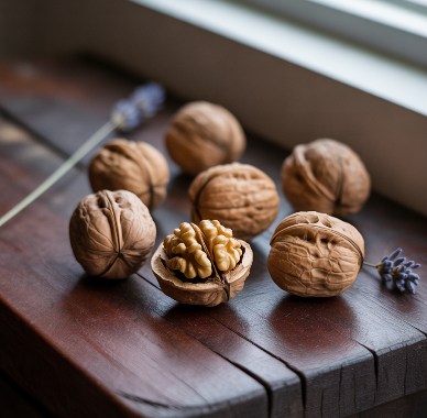 호두에는 멜라토닌의 전구체가 들어 있어 수면 주기를 조절하고 숙면에 도움을 줄 수 있습니다.