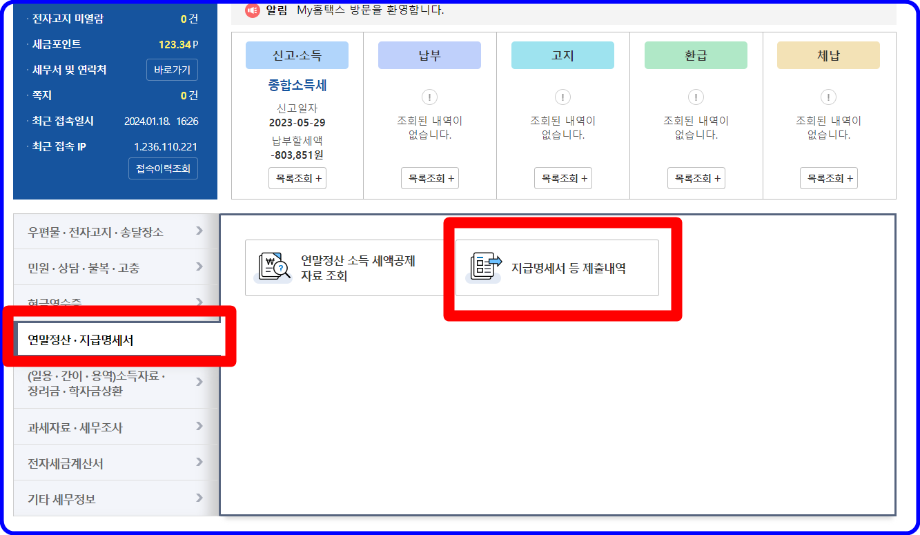 4) 연말정산.지급명세서->지급명세서 등 제출내역 클릭해주세요
